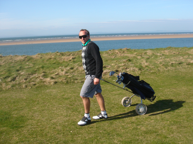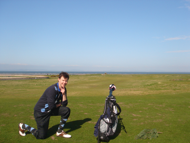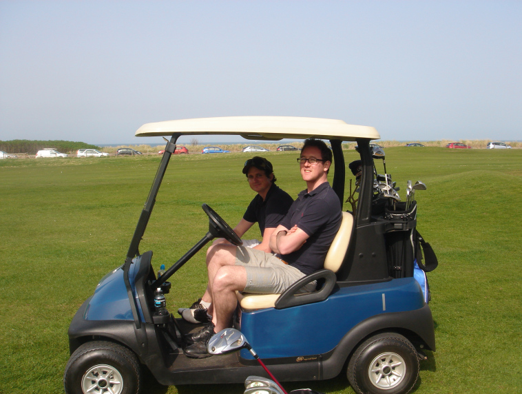 The idea was to make the trip to Scotland and play a Ryder Cup style tournament of New Zealand v England.  We made the trip up there and ensured we kept things pretty well behaved the night before the first round in order to make our golf something less than terrible.  Upon arriving at the course the next morning, there was no sign of our English opposition.  We waited a while and finally a car load of them turned up, but they were in a hell of a state.  One of them vomitted out of the door in the carpark and the others looked like they weren't far behind.  So we left them there.  We went and played golf.  They didn't.